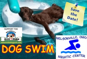 SAVE THE DATE!!! Nelsonville Aquatic Center 2024 Doggie Swim to benefit the Nelsonville Dog Park. Monday, September 9, 2024, from 4:00PM until 7:00PM. Bring your dogs to romp and play and swim. Sun, Fun and Dogs – you can’t have a better time than that!