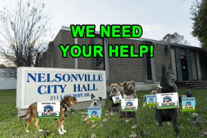 Dog Park Donation Checks need to be made out to CITY OF NELSONVILLE. DOG PARK DONATION should be on the memo line.
